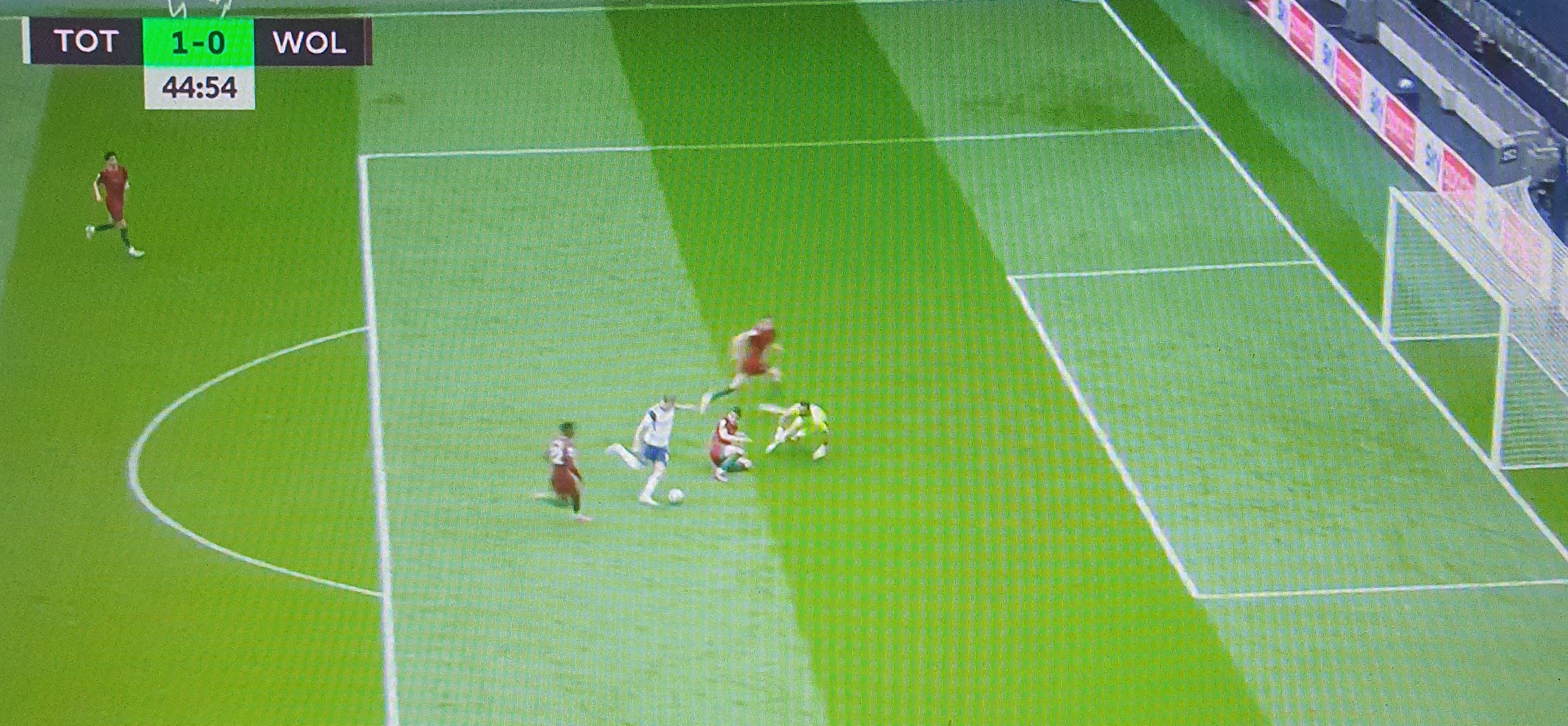 레길론이 기가 막히기 돌파를 해서 손흥민에게 패스!! 베일이 달려오면서 강슛!!!